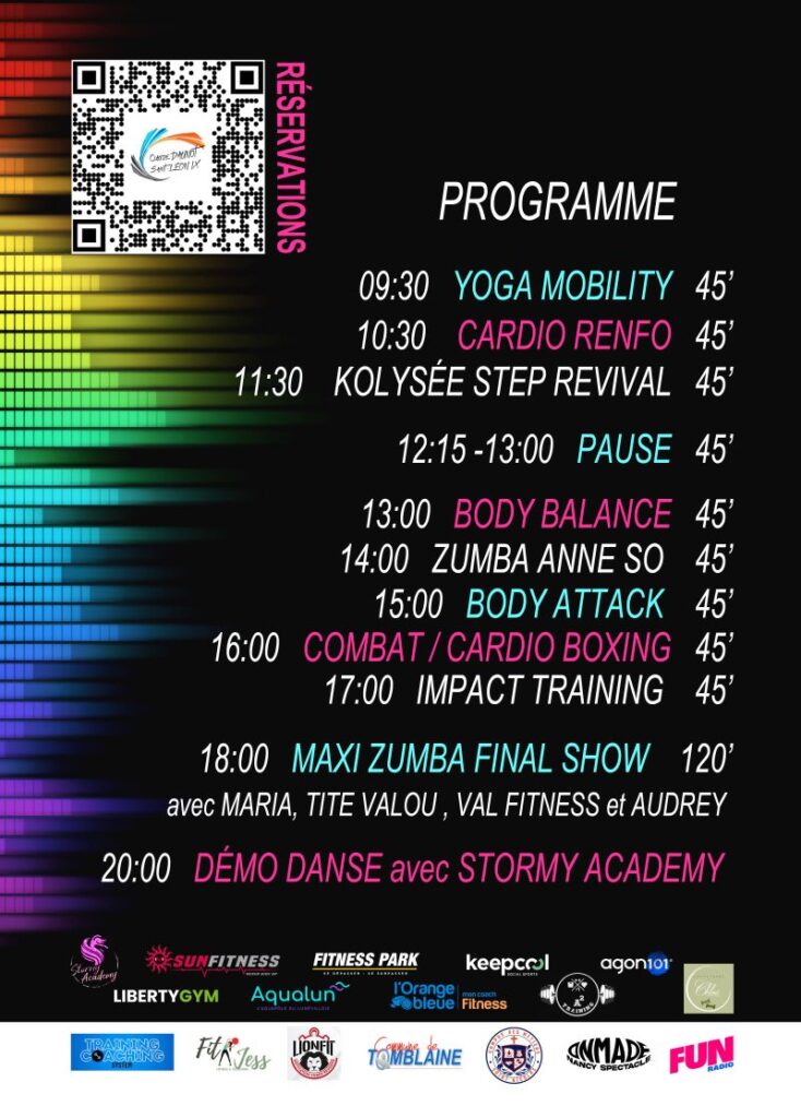 ➡️ Au programme, plus de 10 cours sur la journée, avec des pratiques de tous niveau ( pratiques douces yoga etc, pratiques dynamiques, Zumba et autres …).