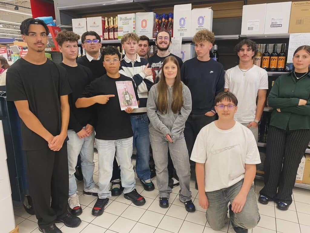 Les élèves de 1ère BAC PRO Commerce ont mis en place la Foire aux Vins chez Carrefour Essey-lès-Nancy. Un bel exemple de mise en pratique de leurs compétences professionnelles en magasin.