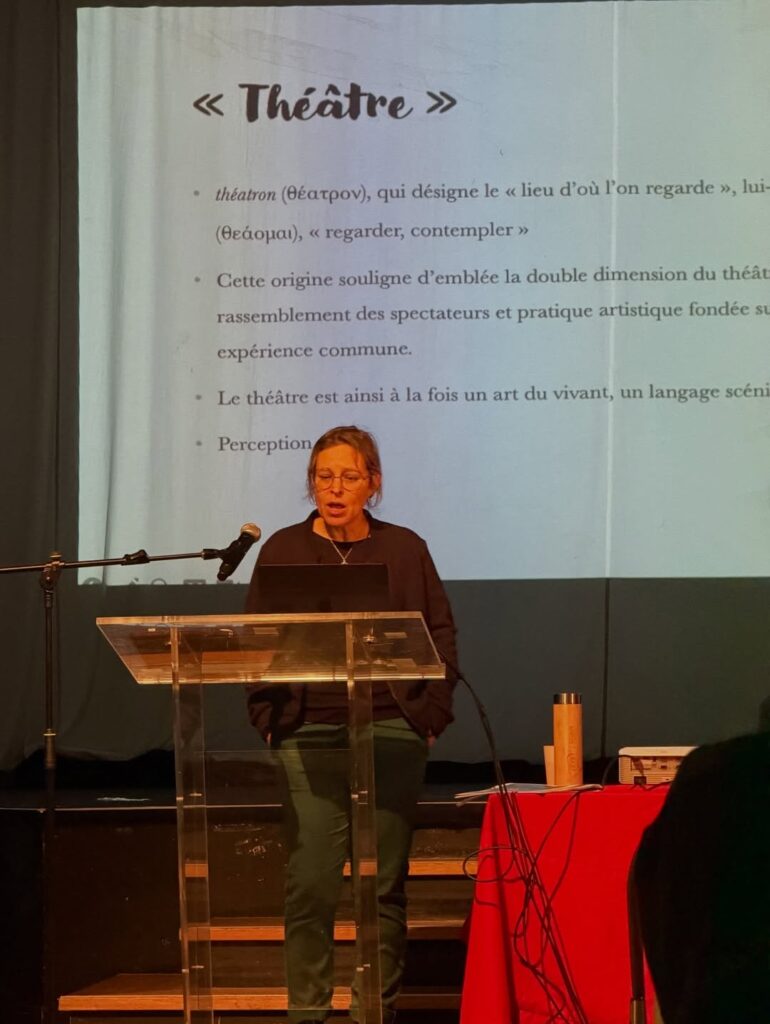 Anna SAIGNES au lycée Claude DAUNOT pour une conférence sur le théâtre et son histoire politique.